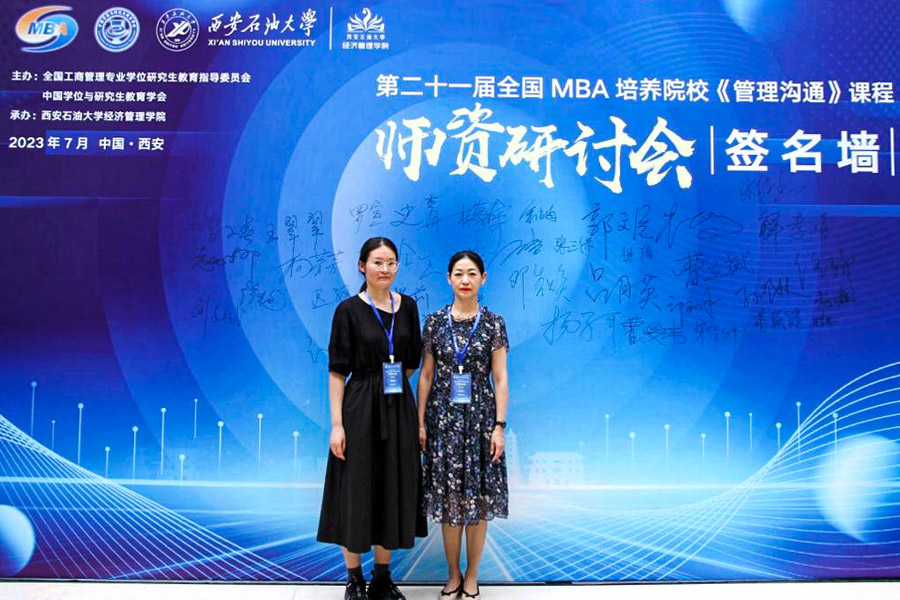 7月8日-7月9日,第二十一届全国MBA《管理沟通》课程师资研讨会在西安顺利召开。本次会议由全国工商管理专业学位研究生教育指导委员会主办,西安石油大学经济管理学院承办。全国MBA教育指导委员会秘书处办公室主任王萍、清华大学苏世民书院副院长钱小军、浙江大学管理学院院长魏江、全国MBA《管理沟通》课程组召集人哈尔滨工业大学经济管理学院教授张莉、西安石油大学党委书记赛云秀等人出席本次会议,全国高校150余位专家学者参会交流。我院副院长史青教授、组织与人力资源管理系樊倩老师参加了研讨会。