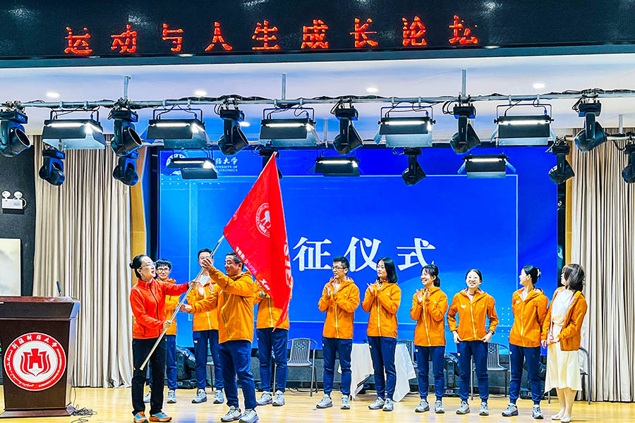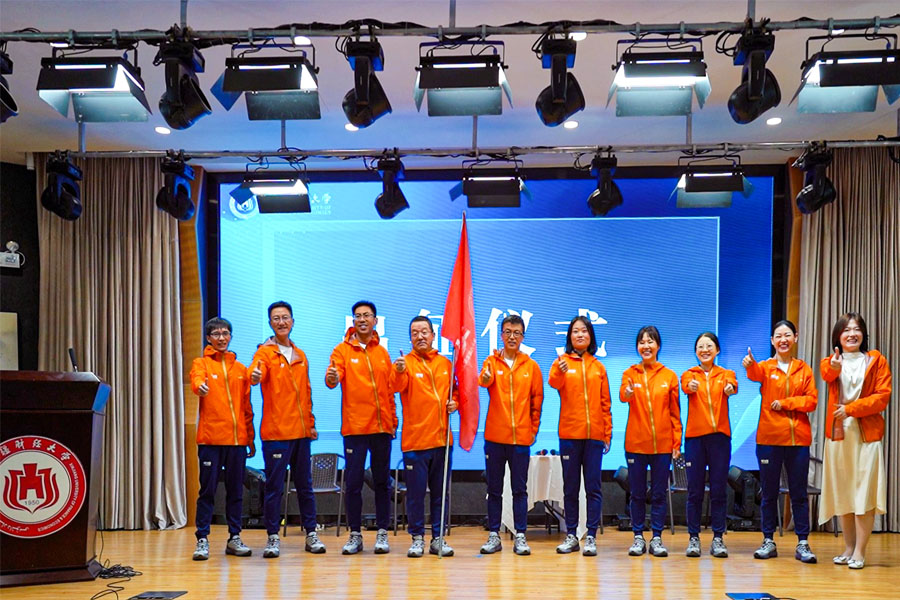 授令旗,将出征。队长白士华接过出征旗,与队员共同喊出口号:“新疆财大,亚克西!”