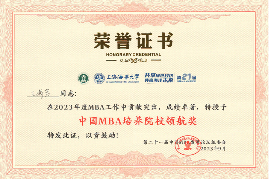 2023年9月22日-24日,以“共享绿色经济 共赢海洋未来”为主题的第二十一届中国MBA发展论坛在天蓝水碧海湾美、沙白林绿岛礁奇的福建东山岛成功举办。学院党委副书记、院长王海芳教授带队,师生一行4人出席了本次论坛,并荣获多项荣誉,收获颇丰!