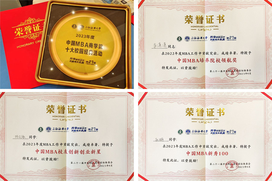 论坛于9月24日闭幕,球王会师生代表团不负众望,在此次评比中,球王会荣获 “中国MBA商学院十大校园经典活动”,王海芳荣获2023年度“中国MBA培养院校领航奖”,MBA教育中心主任李潇潇荣获2022年度“中国MBA培养院校领航奖”,校友彭浩荣获2021年度“中国MBA十大精英人物”,学生陈剑敏荣获2023年度“中国MBA校友创新创业新星”,学生耿鹏、蔡子琦荣获2023年度“中国MBA新秀100”。