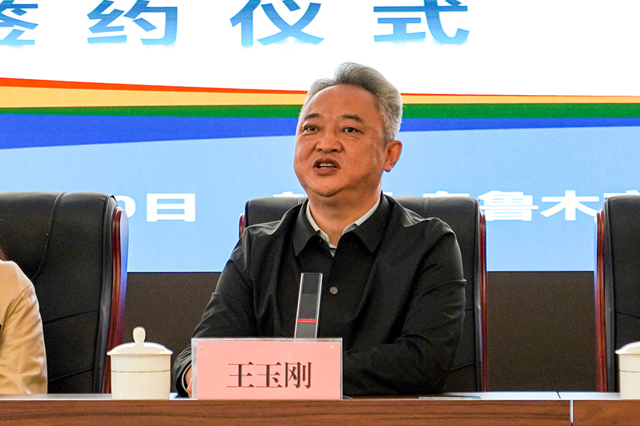 在签约仪式上,王玉刚对新疆广电长期以来给予的支持、信任、帮助表示衷心的感谢,期待以本次校企战略合作签约为契机,积极搭建校企产学研合作平台,从更高层面、更深层次、更广维度与新疆广电开展交流和合作,达到师生、员工、学校、企业多方受益的更高目标。