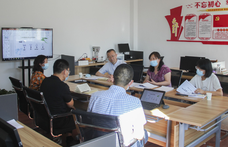 6月8日下午,校党委副书记贺萍、党委常委 组织部长王金涛一行三人到我院调研指导“双带头人”党支部书记工作室建设情况。院党委书记施勇纲、党委副书记、纪检书记梁艳、创新与战略管理系党支部书记高强陪同调研。
