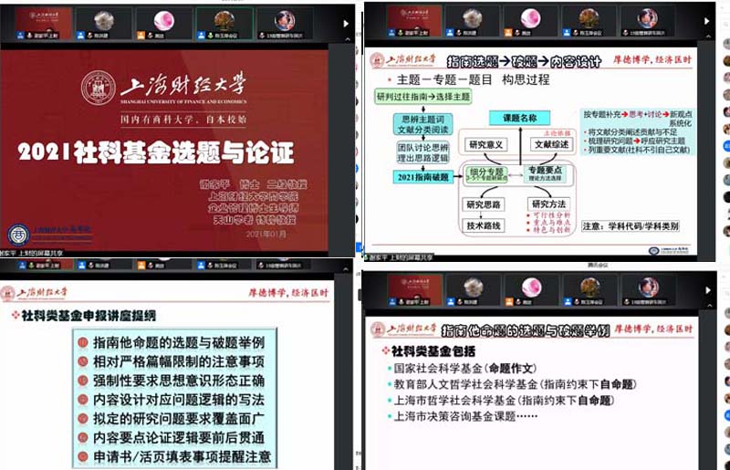谢家平教授从指南选题、破题、内容设计等六个方面,结合实例和自己的成功经验,深入讲解了2021年社科基金项目申报要点。