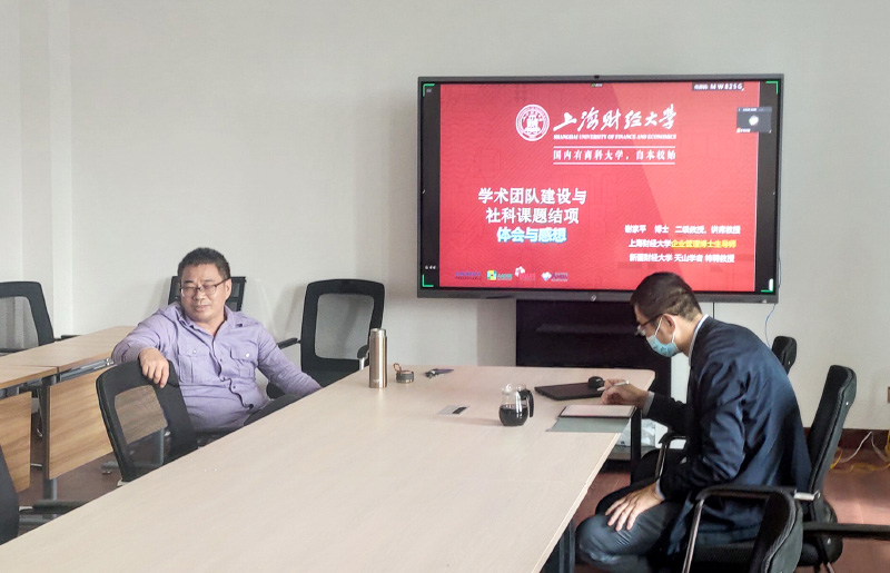 2021年6月23日,学院邀请上海财经大学博士生导师、球王会体育官方网站天山学者谢家平教授以“学术团队建设与社科课题结项”为题作专题讲座,讲座采取“线上+线下”的方式进行,我院老师与新疆科技学院部分老师参加了专题讲座。