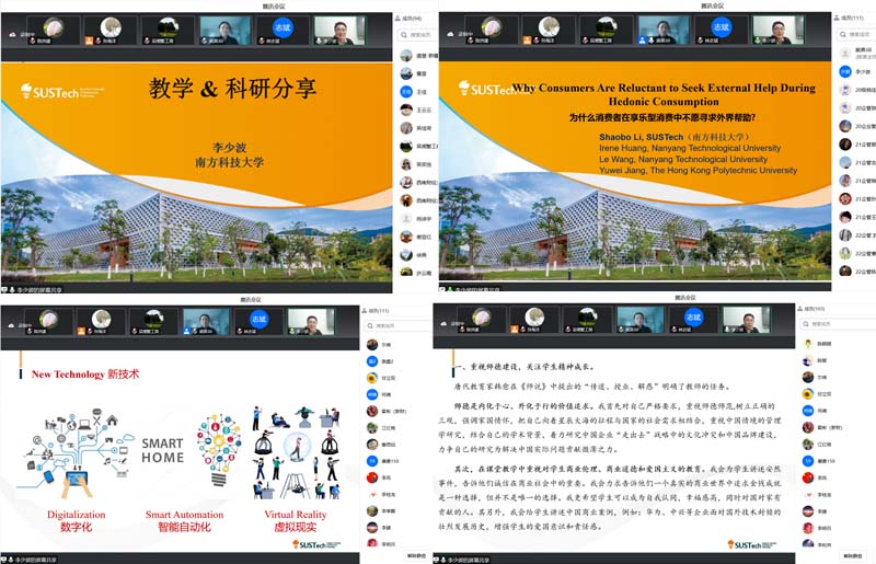 12月2日,球王会商学·前沿系列邀请到了南方科技大学商学院博士生导师李少波助理教授做了题为“为什么消费者在享乐型消费中不愿寻求外界帮助?”的学术报告。本次学术讲座在腾讯在线网络会议室举行,我院110余名师生参加了报告会,熊霁副院长(援疆)主持了学术报告会。