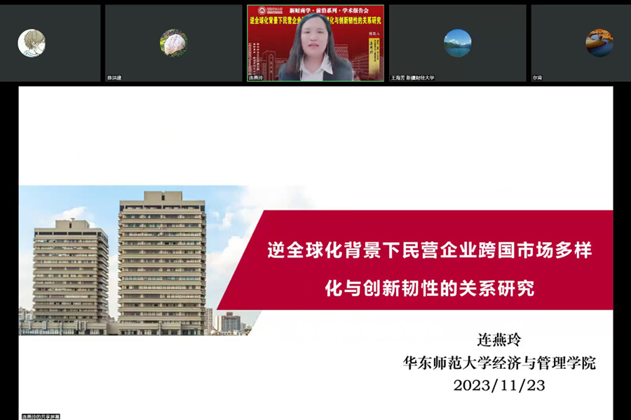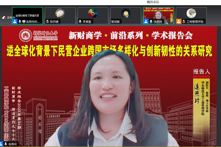 11月23日晚,工商管理学院(MBA学院)邀请华东师范大学工商管理学院副院长、博士生导师、连燕玲教授,以线上方式,为我院师生作了题为“逆全球化背景下民营企业跨国市场多样化与创新韧性的关系研究”的学术报告(球王会商学·前沿系列之七十六)。我院师生90多人参加了报告会,院长王海芳教授主持报告会。