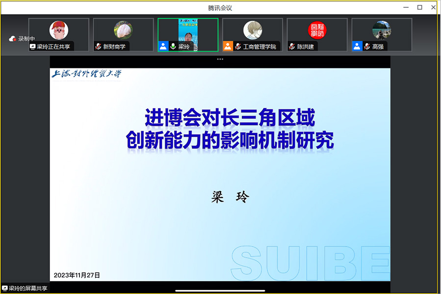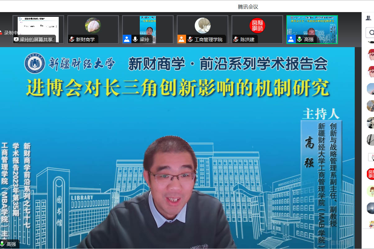 11月27日晚,工商管理学院(MBA学院)邀请上海对外经贸大学副教授、企业管理博士、管理科学与工程博士后梁玲老师,以线上方式,为我院师生作了题为“进博会对长三角创新影响的机制研究”的学术报告(球王会商学·前沿系列之七十七)。我院师生60多人参加了报告会,高强副教授主持报告会。