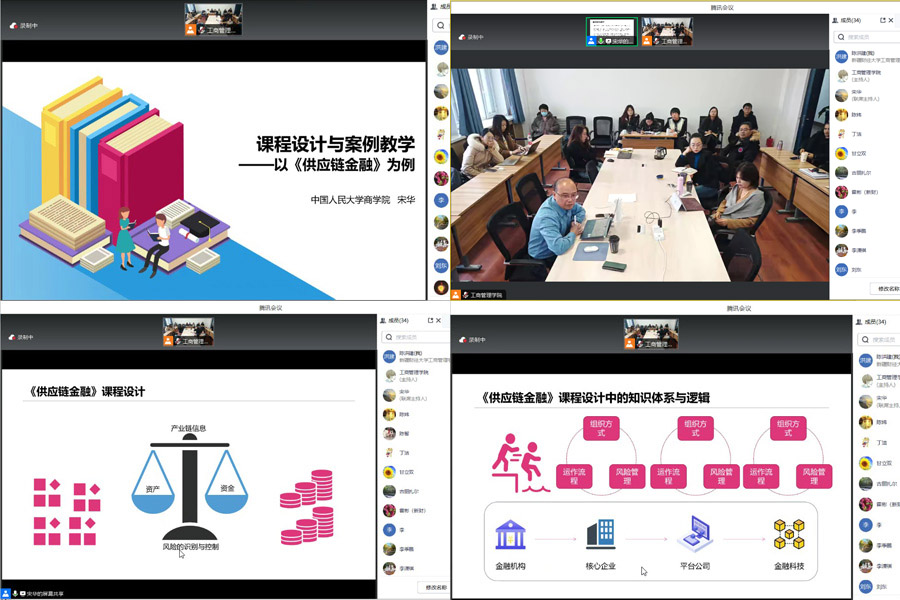 1月18日,学院诚挚邀请中国人民大学商学院党委副书记、博士生导师、球王会体育官方网站“天池学者”特聘教授宋华教授为全院教师以《课程设计与案例教学——以<供应链金融>为例》为题进行了一场学术报告(球王会商学·前沿系列之八十八),学院全体教师分别在线下、线上参加了学术报告会,院长王海芳教授主持报告会。
