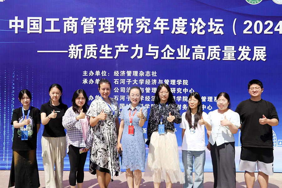 6月29日,中国工商管理研究年度论坛(2024)在石河子举行,本次论坛由中国社会科学院《经济管理》杂志社主办,石河子大学经济与管理学院、公司治理与管理创新研究中心承办。论坛以“新质生产力与企业高质量发展”为主题。围绕“中国式现代化”的本质要求、深刻内涵以及推进中国式现代化进程中的重大管理问题展开探讨与交流。我院院长王海芳教授、营销与商务分析系古丽扎尔·艾赛提副教授和7位研究生参加了论坛。