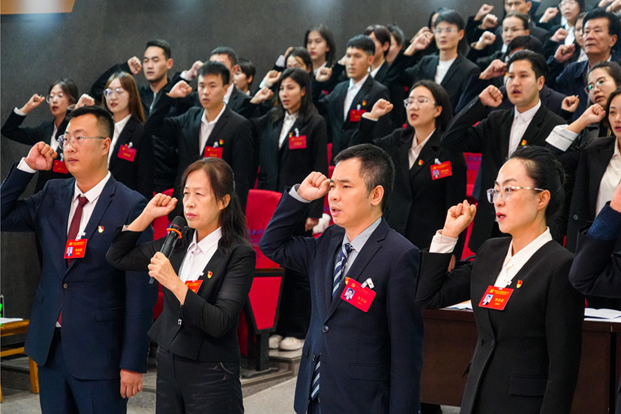 王海芳同志宣布大会开幕、奏唱中华人民共和国国歌、重温入党誓词。