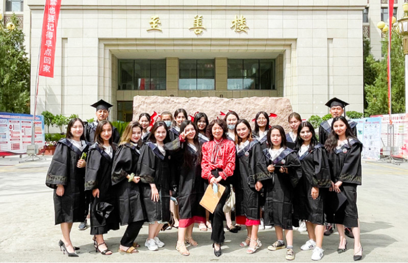 院长陈玉萍教授为毕业生拨穗并颁发毕业证书和学位证书