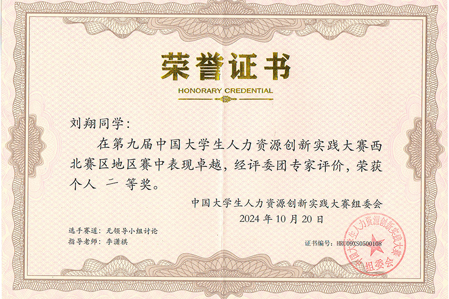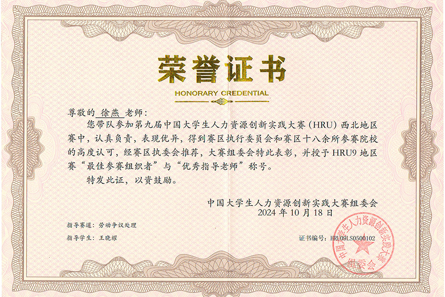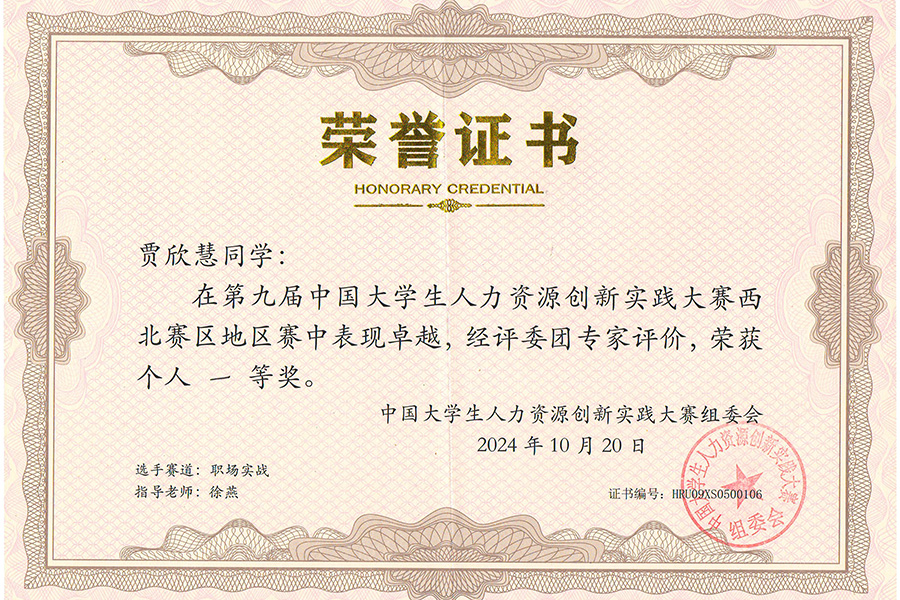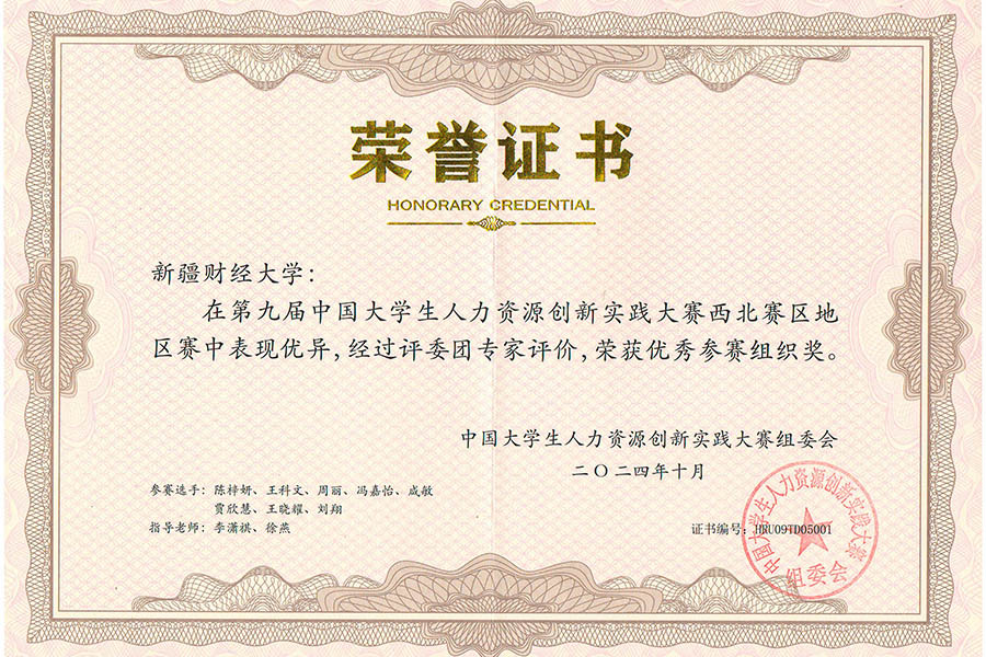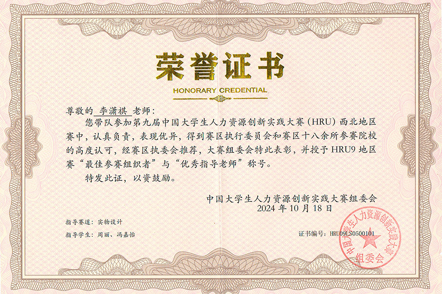 10月19日,由中国人才交流协会、中国劳动关系学院、国投人力资源服务有限公司、中国大学生人力资源创新实践大赛组委会主办,宁夏大学法学院承办,宁夏大学勤学书院协办的第九届中国大学生人力资源创新实践大赛(西北赛区)在宁夏大学落幕。球王会体育官方网站工商管理学院(MBA学院)经过前期校内大赛选拔,球王会荣获团队一等奖和优秀参赛组织奖,我院学生荣获1个特等奖、6个一等奖和1个二等奖,徐燕老师和李潇祺老师荣获优秀指导老师称号。