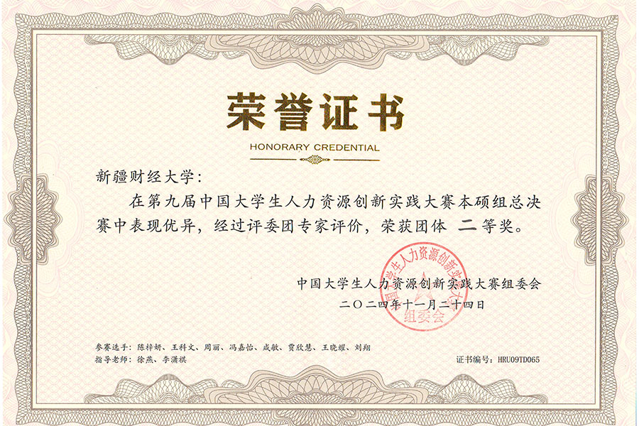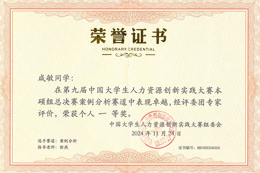 11月22日至24日,第九届中国大学生人力资源创新实践大赛(HRU)总决赛在河北雄安新区顺利举办。本届大赛深入贯彻党的二十大精神,坚定人才是第一资源、创新是第一动力,不断拓宽夯实大赛平台,意在培养具有创新意识和实践精神的高素质应用型人才为目标。经过全国七大赛区共345所高校比拼,最终100所高校的1000余名选手挺进总决赛。球王会体育官方网站最终取得全国总决赛团队二等奖,工商管理学院(MBA学院)学生分别荣获个人一等奖2项,二等奖6项。