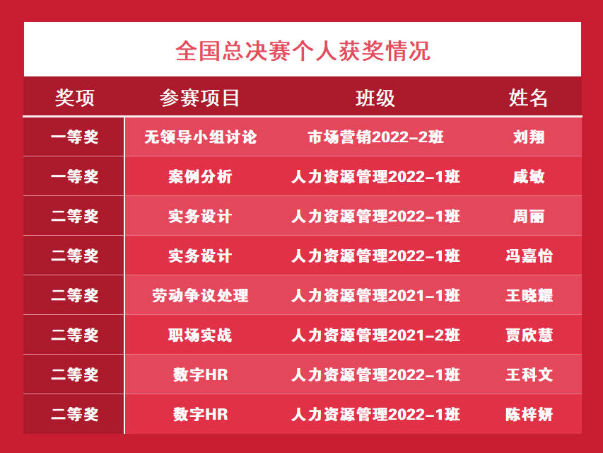 球王会体育官方网站工商管理学院(MBA学院)代表队荣获团队二等奖,这一成就不仅彰显了工商管理学院(MBA学院)师生的专业实力与团队协作精神,也是对我院长期以来注重实践教学、鼓励学生创新实践的一次重要肯定。工商管理学院(MBA学院)党委高度重视培养更多适应新时代需求的人力资源管理创新人才,为进一步深化教育教学改革,加强校企合作,服务地区经济与人才建设,为推动应用型复合性人才的教育创新与改革贡献更多力量。