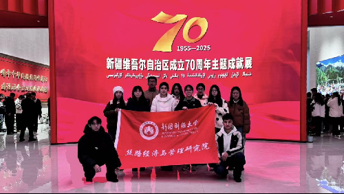 11月5日上午,丝路经济与管理研究院全体学生前往新疆维吾尔自治区成立70周年主题成就展现场,开展研学实践活动。展览以生动的影像、珍贵的实物与翔实的数据,全景式呈现了新疆从百废待兴走向繁荣昌盛的壮丽征程,参观过程中,同学们深刻感受到党中央对新疆发展的深切关怀,体会到全国各族人民同心协力、砥砺前行的奋斗精神。