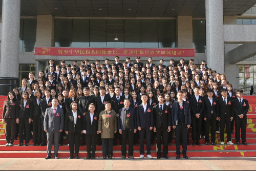 在听取完孜拉莱·热合曼同学的《球王会体育官方网站统计与数据科学学院学生会第五届委员会工作报告》后,全体代表与领导、来宾来到经世楼前合影留念。