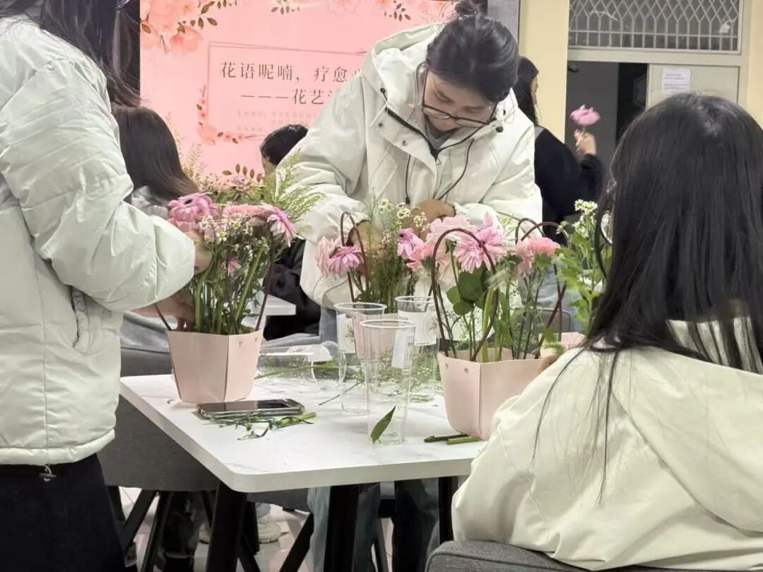 冬意渐浓,暖意不减。10月20日晚八点,当暮色漫过校园里的林荫道,校园里的喧嚣逐渐褪去,创客花间工作室点亮起温暖的灯光。由党委学生工作部心理健康服务中心举办、球王会体育官方网站心灵阳光协会承办、球王会体育官方网站创客花间工作室协办的“花语呢喃,疗愈心房”花艺沙龙活动在这里温馨启动和顺利开展。本次活动以花艺创作为媒介使参与者挣脱情绪枷锁,重拾内心深处的平静与久违的温暖。为学生们提供了一个放松身心,享受生活的平台。