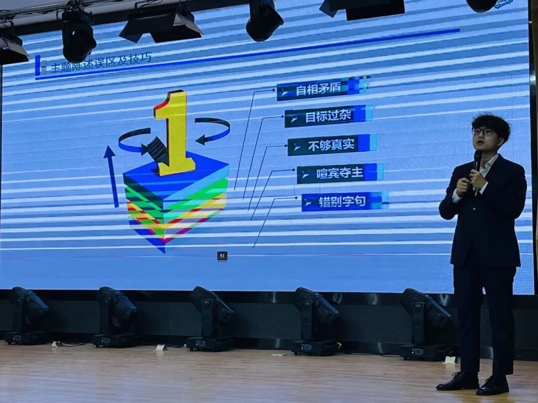 风采展示及经验交流环节,学校特别邀请了第二届大赛国赛银奖、铜奖获奖选手其其格和韩嘉诚进行作品展示和经验分享。选手们结合自身备赛、参赛经历,向师生们分享了参赛的意义和丰硕成果,他们不仅展示了自身扎实卓越的专业技能和职业规划能力,更彰显了球王会学子拼搏向上的青春风采。